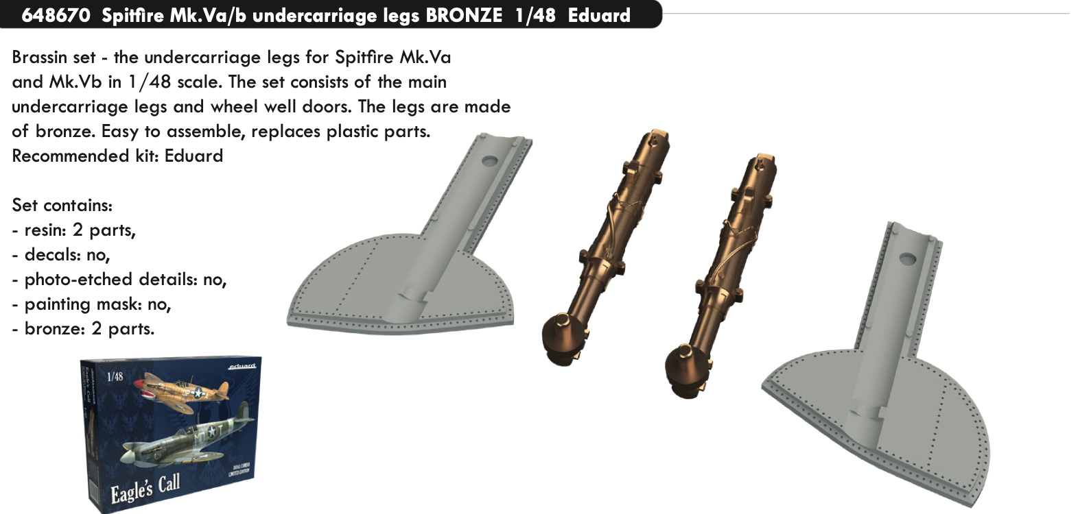 Eduard Brassin 648670 1:48 Supermarine Spitfire Mk.Va/Mk.Vb undercarriage legs BRONZE