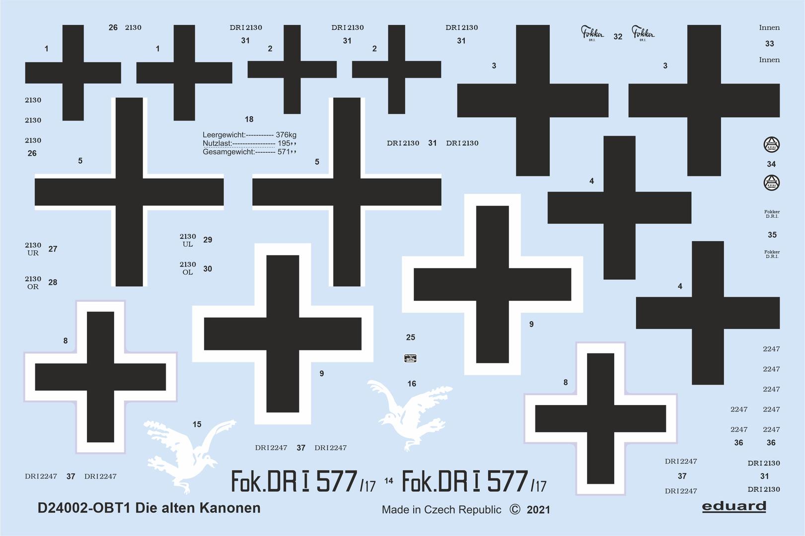 Eduard D24002 1:24 Die alten Kanonen Fokker Dr.I Triplane