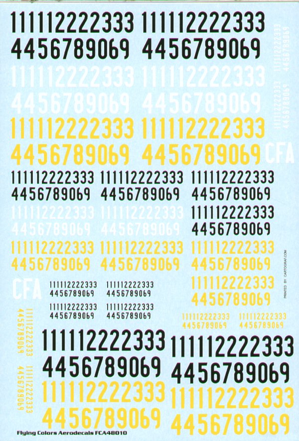 Flying Colors Aero FCA48010 1:48 Swedish Air Force Thick Numerals 1935-63 in Black, Yellow & White 3 Sizes