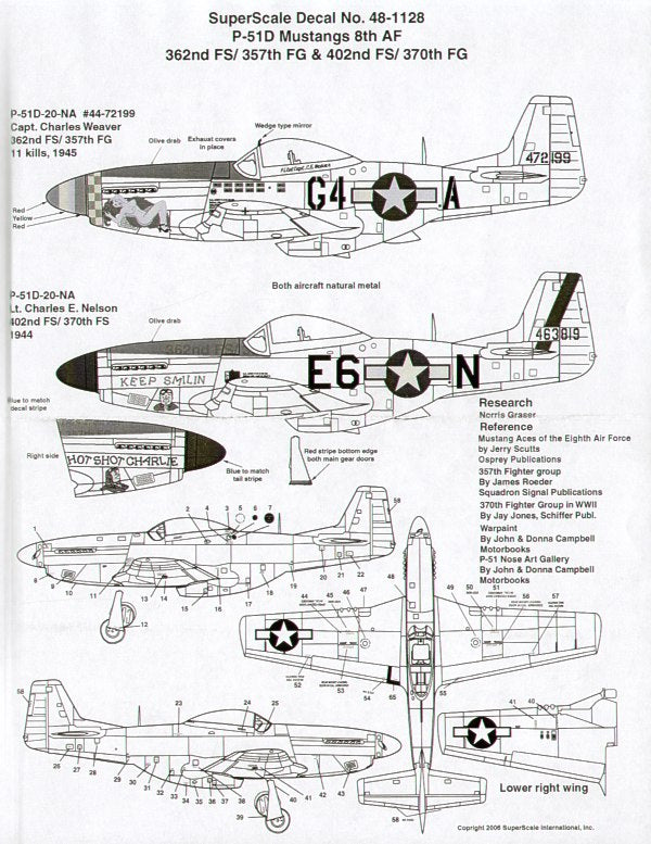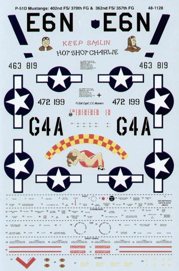 44-72199 G4-A 362 FS/357 FG Capt Charles Weaver; 44-63819 E6-N 402 FS/370 FG Lt Charles Nelson `Keep Smiling/Hot Shot Charlie'